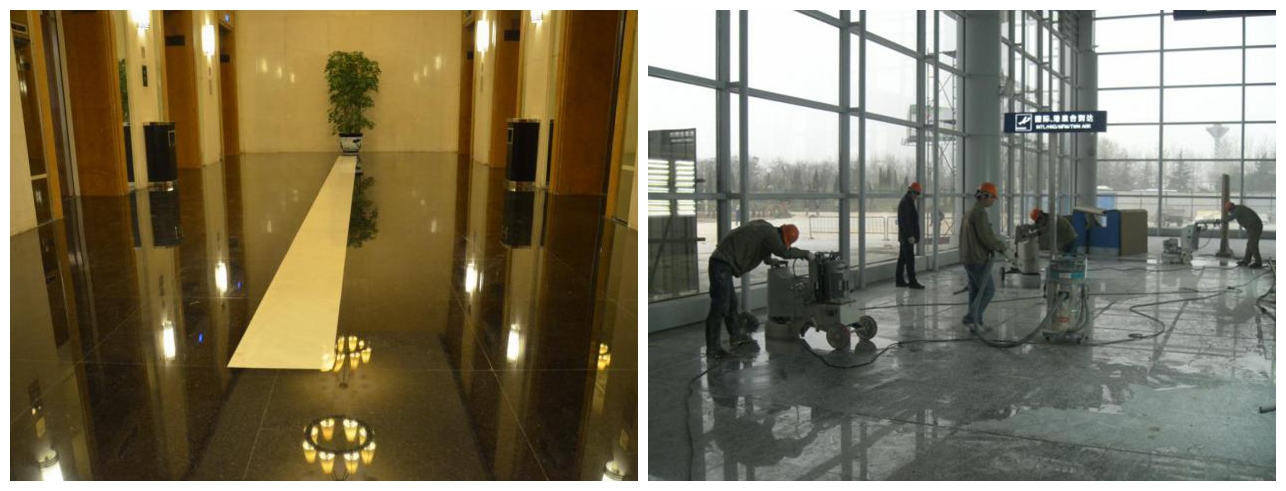 洛阳华阳广场国际酒店花岗岩地面华岩养护效果                                                                      洛阳机场航站楼华岩团队施工中