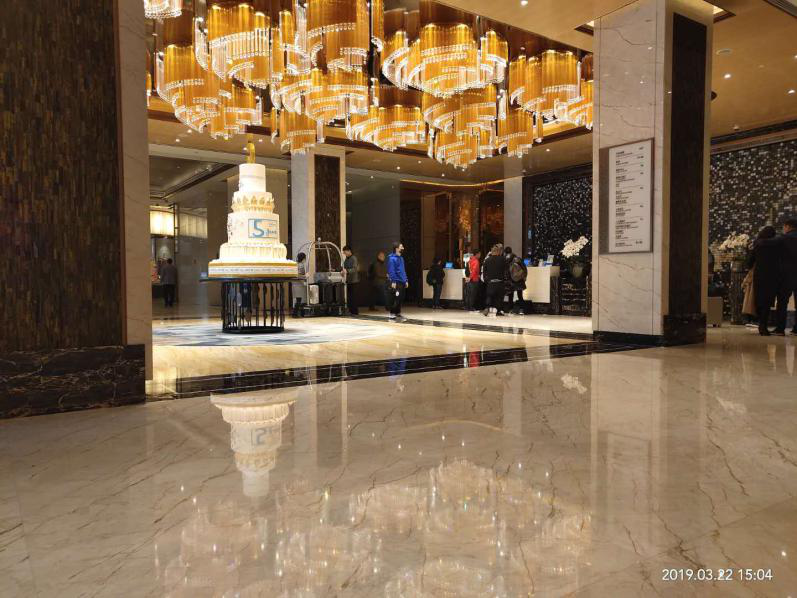 希尔顿酒店地面石材保养后效果