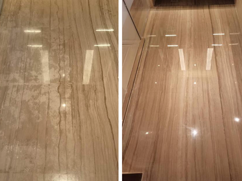 酒店地面返碱石材翻新前后对比
